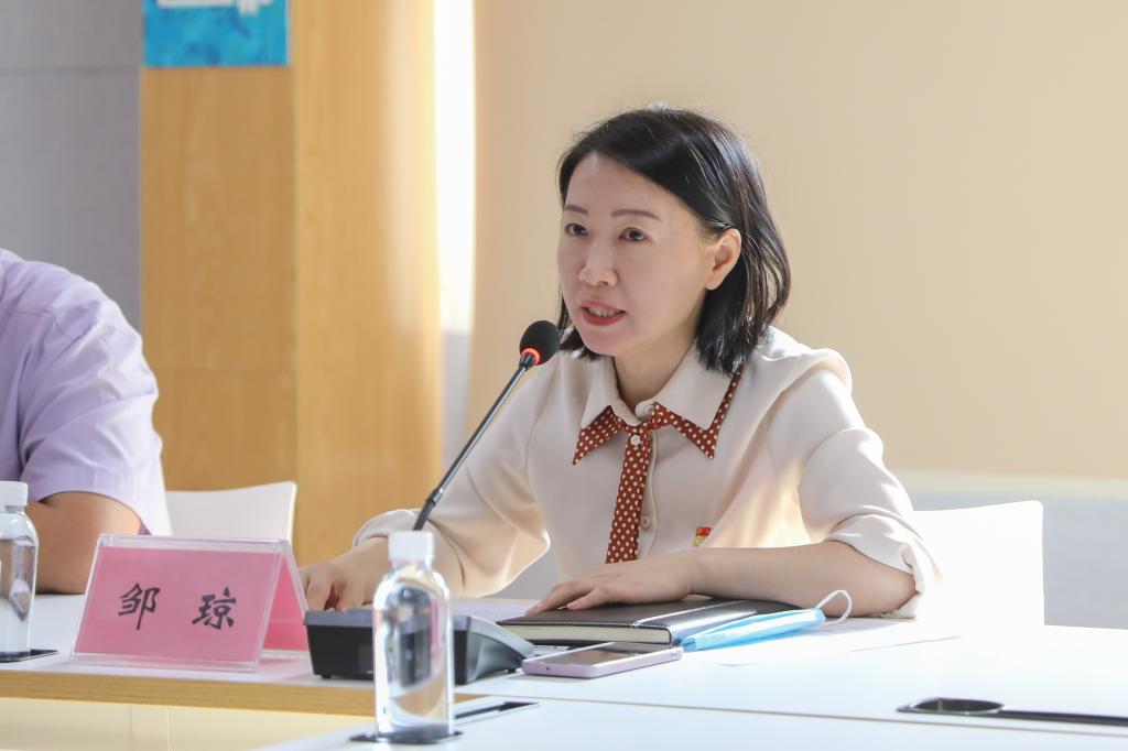 会上,学校党委委员、党委宣传部部长邹琼总结了学校党史学习教育开展情况,特别是学习贯彻习近平总书记“七一”重要讲话情况,介绍了党史学习教育下一阶段的工作安排。邹琼指出,学校把学习宣传贯彻习近平总书记“七一”重要讲话作为党史学习教育的重点抓紧抓实,不断丰富学习形式、突出实践导向、增强工作成效,多形式、多渠道、全方位在广大师生中掀起学习贯彻热潮,立体化推动“七一”重要讲话精神入脑入心、见行见效,持续巩固和拓展党史学习教育良好态势。在党史学习教育第二阶段,学校组织了3400多名师生开展了暑期社会实践活动;40位领导干部围绕“七一”重要讲话精神为近4000名学生讲授思政课;基层党组织将入党启蒙教育与党史学习教育相结合,两个月里5100多名新生中有3064人递交了入党申请书;扎实开展“我为群众办实事”活动,完成实事项目64项。
