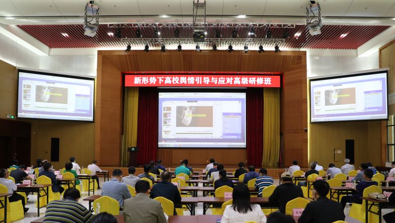 为进一步提升我校领导干部、宣传工作队伍和学工队伍舆情处置能力,10月18日-21日,学校与北京市高等学校师资培训中心合作,采取线上线下相结合的学习方式,举办“新形势下高校舆情引导与应对高级研修班”,组织校内各二级党组织、二级组织机构主要负责人,二级党组织宣传委员,学研工部、团委、就业中心科级及以上人员,二级学院学生工作负责人系统学习新形势下如何进一步加强舆情风险处置引导能力。