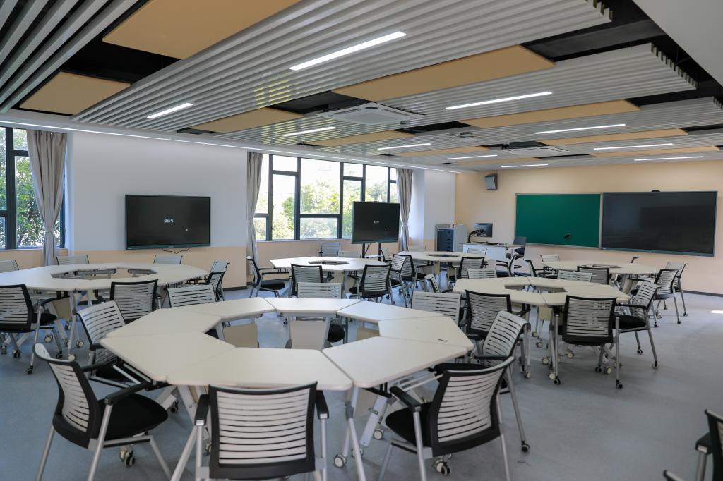 回到课堂,松山湖校区的同学们惊喜地发现教学楼部分课室有了新的变化,六块可交互的屏幕,重新装修后的良好环境,给师生带来了全新体验。由教务处牵头,改造建设的22间智慧课室在本学期正式启用。智慧课室主要用于小班教学,适合翻转式课堂、小组展示,实现信息技术与教育教学的深度融合,真正使课堂从“教”为中心转变为以“学”为中心。