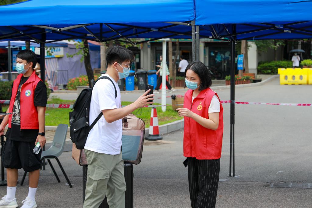 近两个月没有见到学校,2019级粤台产业科技学院的黄湛权无比想念校园生活,于是便早早地来到了学校,刚刚做完核酸检测的他分享道,一开始是在学校的公众号,还有学院微信群通知中得知了分批检测的具体要求。在返校的过程中,黄湛权全程按照志愿者的指引,只需几分钟就能完成核酸检测等一系列返校流程。对于分批返校这个安排,黄湛权说:“这种方式非常合理,可以从根源上防止人员聚集交叉感染,同时使现场的秩序可以得到保障。在学校进行核酸检测可以不用怎么排队,也保证了师生的安全。”言语之中,难掩返校的激动之情。
