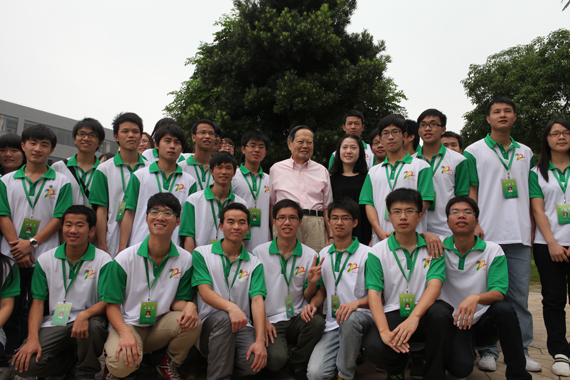 杨振宁伉俪与校庆志愿者在一起