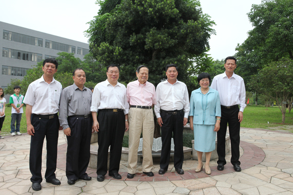 4月27日上午,春风和煦,阳光明媚,诺贝尔物理学奖获得者、我校名誉校长杨振宁,著名学者、书画家、诗人范曾大师在学校领导周致纳、杨晓西、黄碧莲、吕琦元、戴炳源等的陪同下,来到我校院士林,为莞工校园再添新绿。