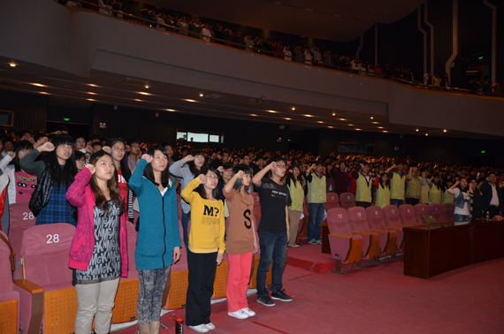 为进一步发挥团组织的战斗堡垒作用和团员的模范带头作用,为校庆志愿者工作提供坚实的组织保障,动员大会上,校团委副书记黄金和宣读了《关于在我校校庆志愿者队伍中成立临时团总支的通知》,正式成立了校庆志愿服务临时团总支,同时对全体校庆志愿者动员讲话,提出相关要求。全场近千名志愿者也在志愿者代表姜兰同学的带领下进行了集体宣誓。