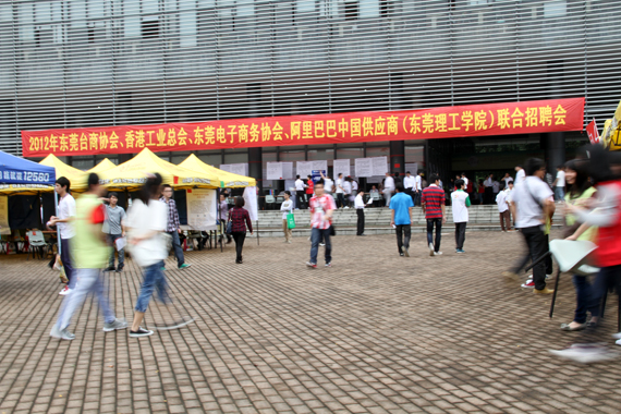 4月21日,2012年东莞台商协会、香港工业总会、东莞电子商务协会、阿里巴巴中国供应商联合招聘会在我校图书馆前举行。这是我校为2012届毕业生举行的最后一次大型校园招聘会。本次招聘会共有209家企业参会,提供金融、管理、网络通讯以及计算机技术等岗位2800多个。