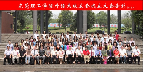 4月14日,以“One department,one family”(一系一家)为主题的我校外语系校友会成立大会在学术交流中心报告厅举行。校领导周致纳、杨晓西、黄碧莲、吕琦元,学校教育发展基金会理事长王江水,校党委组织部、学生处、发展与联络办公室等部门负责人,外语系教师与校友代表等出席了大会。学校党委书记周致纳题词“心系莞工,走向世界”祝贺外语系校友会成立。