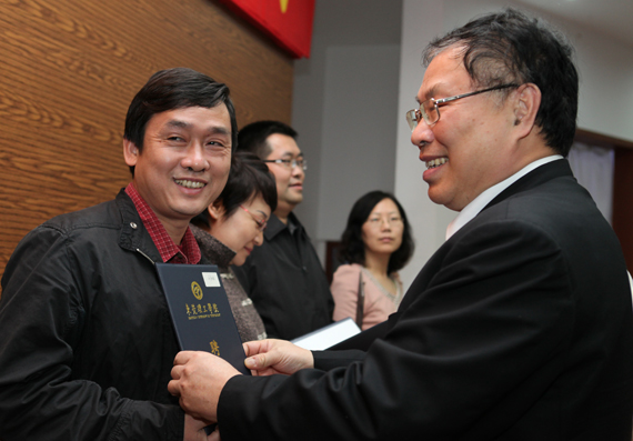 校领导吕琦元、邹晓平、戴炳源,校党委委员李培经、邢大立、杨敏林和机关各部处、院系主要负责人参加了聘任仪式。