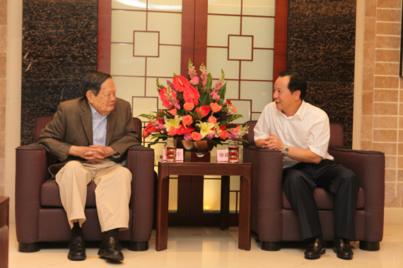 4月27日下午,东莞市委书记、市人大常委会主任徐建华到杨振宁博士下榻的酒店会见杨振宁博士。