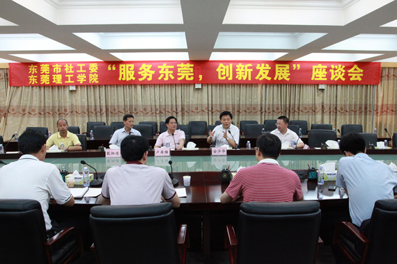 7月11日,我校副校长安少华、戴炳源率校内专家等10多人与东莞市社会工作委员会专职副主任卢寿维一行5人在我校莞城校区就“地方大学如何提升服务水平和创新能力,为东莞创新社会管理服务”这一主题展开了热烈讨论。