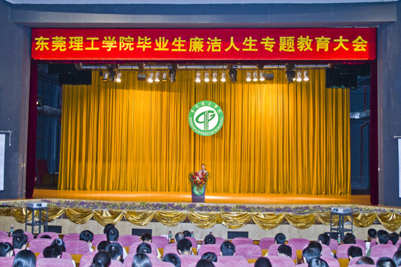 6月25日下午,在2012届毕业生即将离校的前夕,校纪委联合学生处在大礼堂举行了毕业生廉洁人生专题教育大会,邀请东莞市人民检察院公诉二科检察官、市检察院普法宣讲团讲师刘嵘作了题为“廉洁人生路 走好每一步”的专题报告。校党委副书记、纪委书记黄碧莲,审计监察处(纪委)全体工作人员以及毕业生党员等共900多人参加了大会。