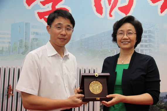 成洪波与王迎军分别代表两校互换了纪念品。