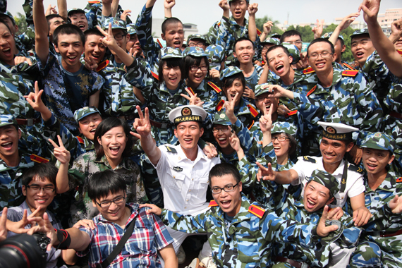 新生们为顺利完成军训任务欢呼