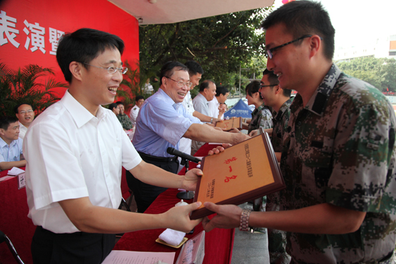 校领导为军训竞赛项目优胜单位颁奖