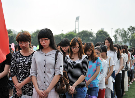 开幕式上,师生们首先为雅安地震遇难同胞进行了默哀。
