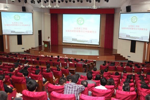 3月21日,学校召开加强科研管理暨项目申报辅导会。校领导杨晓西、吕琦元、安少华、李忠红,相关职能部门负责人及具有副高以上职称或博士学位教职工等260余人参加了会议。广东省科技厅社会发展与基础研究处副处长王玉龙、东莞市科技局副调研员杨静应邀参会。