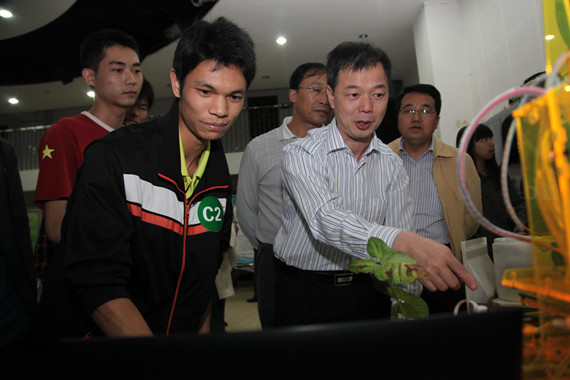 3月28日,我校第五届“挑战杯”大学生课外学术科技作品竞赛答辩会在学生活动中心举行。副校长李忠红到场观看作品展示并与参赛学生交流。