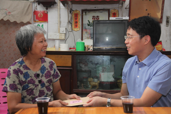 随后,成洪波到驻户黎锦仙家中走访,了解黎家的家庭现状,与户主和孩子叙家常、话发展,向他们赠送了慰问金,并与他们一家共进午餐。饭后,成洪波还向黎家支付了午餐费。