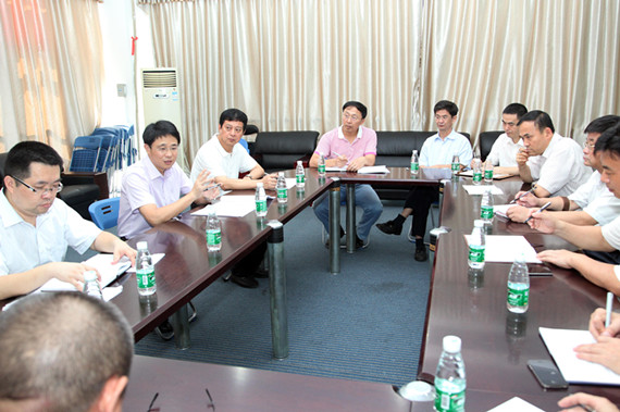 在工商管理学院会议室,成洪波与各院(系)党务负责同志座谈交流。