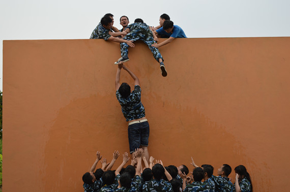 新进教职工齐心协力翻过“毕业墙”
