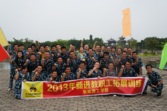 7月13日,参加2013年岗前培训的教职工在教师发展中心的组织下前往东莞粤晖园训练基地进行了为期一天的团队拓展训练活动。