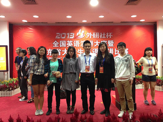 11月10日,2013“外研社杯”全国英语演讲大赛暨广东省大学生英语演讲比赛在广州仲恺农业工程学院举行。外语系刘瑾老师指导并带领我校校赛冠军——卓越工程师计划班学生陈耿南代表我校前往参加比赛。本次比赛以“微信”为主题,要求选手用英文阐述微信对人们生活的影响,陈耿南同学在场上表现沉着、稳定,最终获得比赛优秀奖。
