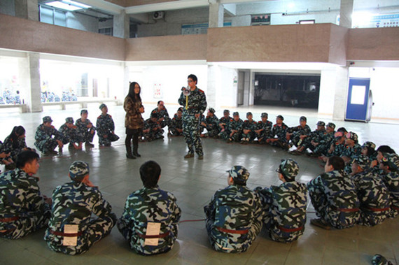 素质拓展训练由学生处老师、驻校社工根据新生特点共同设计与组织,主要通过游戏的方式进行,旨在锻炼同学们的集体团队意识和合作意识,增强团队的凝聚力。军训前,社工与心理中心老师对担任军训指导员的相关老师进行培训,军训中再由指导员和社工共同带领连队开展拓展活动。