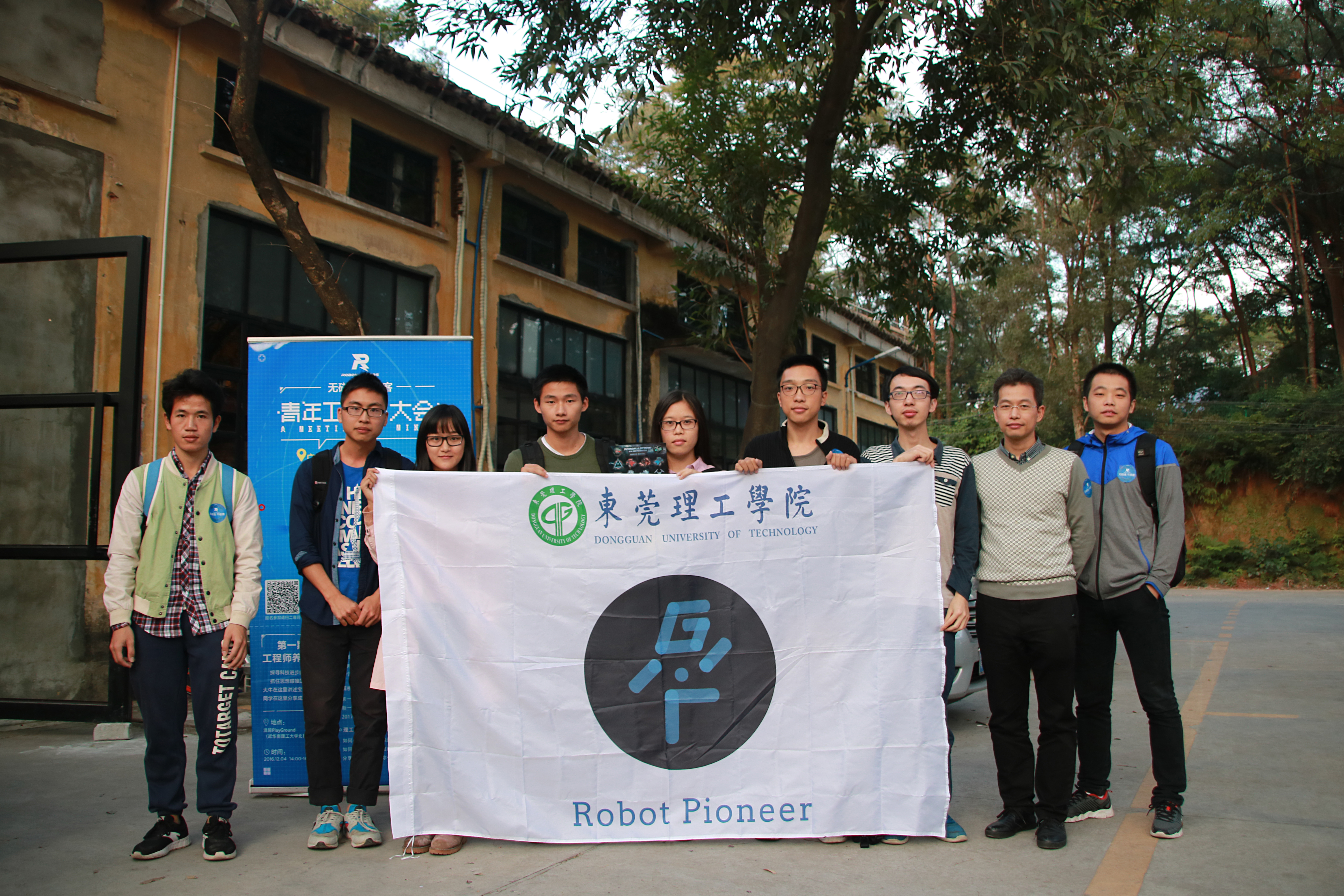 Robot Pioneer战队是由计算机与网络安全学院于2016年10月发起组建,首批队员由跨学院的35名优秀同学组成,主要来自于计算机与网络安全学院、机械工程学院、电子工程与智能化学院。李广明副教授、陈传祥工程师、邓君工程师担任指导老师,充分体现了我校师生发挥专业优势,合作共赢的团队意识。
