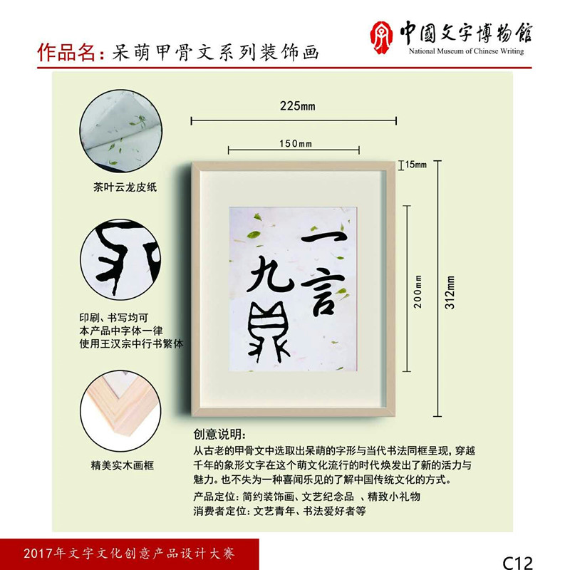 获奖的作品分别是由袁瑞敏、单晓彤、陈绮敏设计作品“笔墨横姿餐具” “呆萌甲骨文系列装饰画”“萌哒哒甲骨文线圈镂空笔记本”,由何彦琦、陈雅娴、庄依琳设计的作品“手丸土(垫)”。