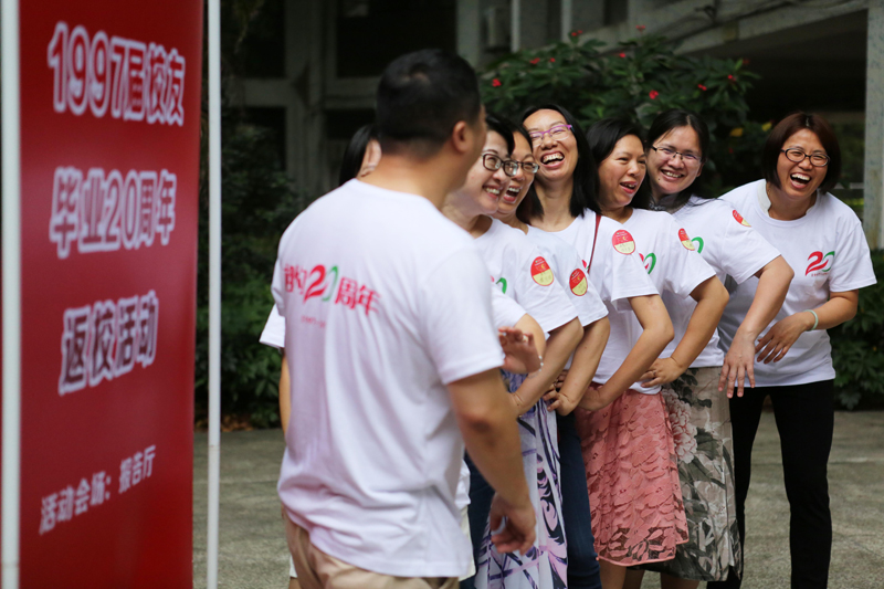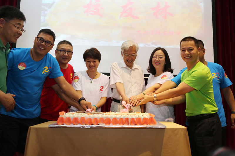 1997届校友毕业20周年适逢母校建校25周年,校友们精心准备了一个大蛋糕为母校庆生。最后,全场齐唱《明天会更好》,以此祝福母校并勉励自己继续在各自岗位上努力奋斗,为母校和社会发展贡献力量。(蒋韵如等/摄)