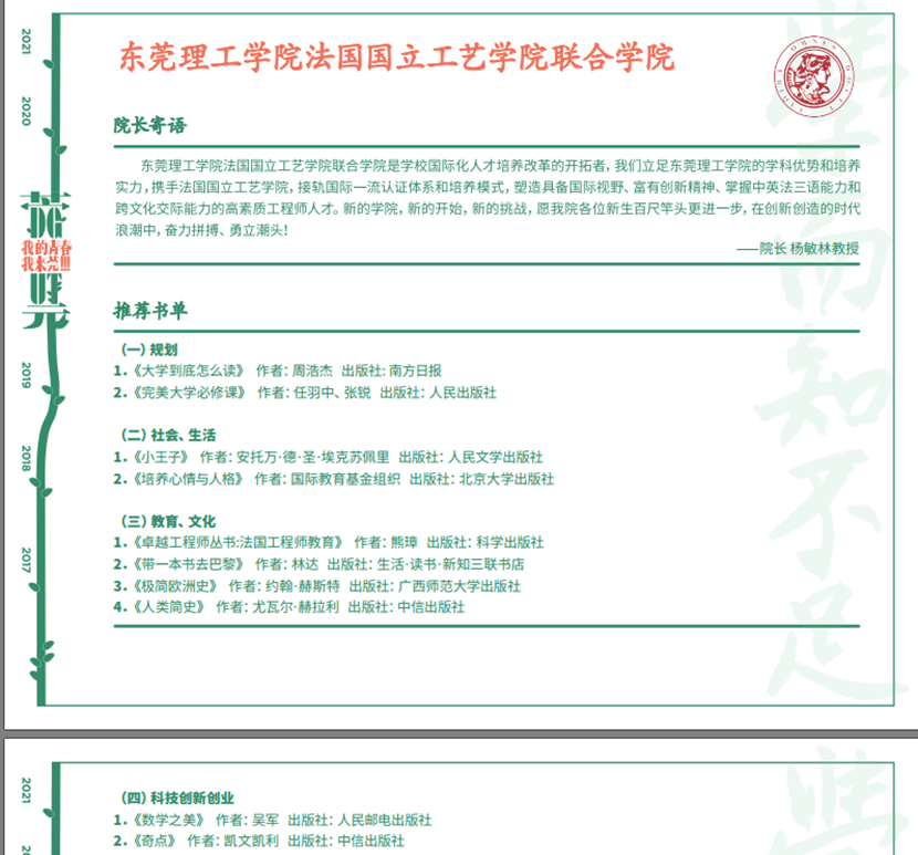 每个学院院长为自己的新同学写下了推心置腹的寄语,有欢迎、有期待、有希望,并根据学科特点推荐了阅读书单,尚未谋面,心已相通。