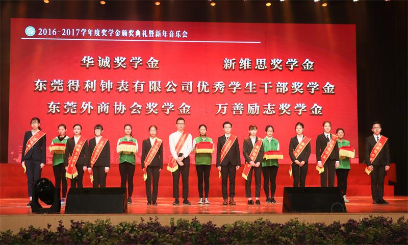 12月20日晚,我校在松山湖校区礼堂举行2016—2017学年度奖学金颁奖典礼。校领导成洪波、李忠红、杨敏林、马宏伟,在我校设立奖学金的企业代表,我校相关单位负责人以及师生代表等参加典礼。学校党委副书记吕琦元主持颁奖典礼。