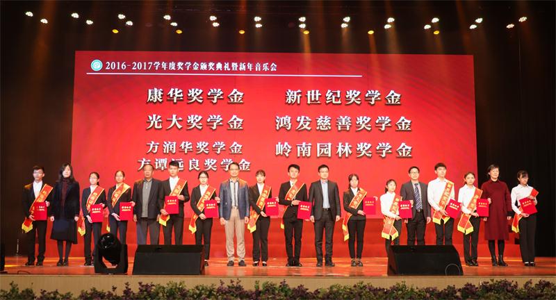 本年度颁奖典礼上,我校表彰了36个先进班集体、23名优秀大学生标兵、742名优秀大学生、751名优秀学生干部以及4811名获得各类奖学金的同学。本年度共有21家企业、机构或个人在我校设立21项奖学金,它们分别是“光大”奖学金、“康华”奖学金、“新世纪”奖学金、“鸿发慈善”奖学金、“方润华”奖学金与“方谭远良”奖学金、“百安石化”奖学金、“外商协会”奖学金、“冷阳”奖学金、“万善励志”奖学金、“新维思”奖学金、“得利钟表”奖学金、“驰鹏”奖学金、“95届校友”奖学金、“华诚”奖学金、“广东长盈”奖学金、“李小瑶”奖学金、“雏鹰基金”奖学金、“种子”奖学金、“冠力环保人才”奖学金、“岭南园林”奖学金、“东莞青旅”奖学金。当晚各类奖学金颁奖中,最引人注目是6个团队获得杨振宁奖学金,12个团体与个人获得岭南奖学金,他们都是在全国各类科技竞赛中获得优异成绩的学生团队。另外,有23人获得国家奖学金,每人获得8000元。奖学金总额达460多万元。