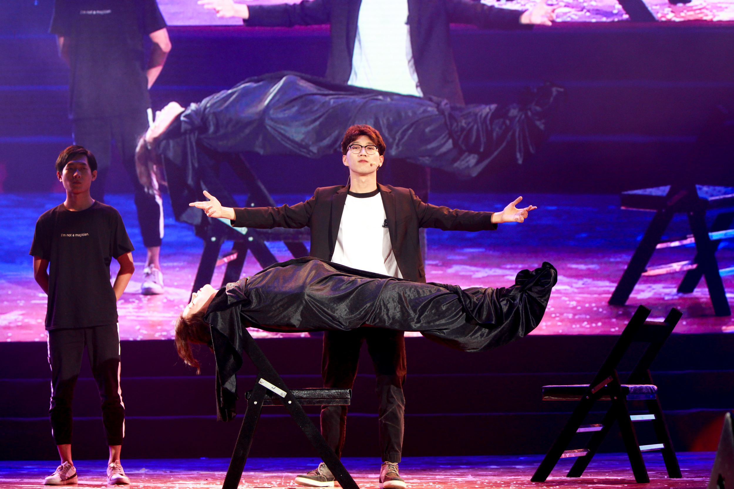 晚会下篇精彩纷呈,刚获得“东莞声音”大赛银奖的王和卿老师以一首«You Raise Me Up»唱出了毕业生的心情,群舞《你好,再见》以现代芭蕾的形式演绎了毕业生四年莞工生活的喜与悲。社区服务中心的保安阿姨代表为毕业生们带来一曲«明天会更好»,赢得了现场最热烈的喝彩与掌声。现场还播放了后勤人员对毕业生们的祝福视频。伴着教育学院带来的《鸿雁》和《拉德斯基进行曲》两首无伴奏合唱歌曲,晚会缓缓谢幕,“情系莞工”之情越发浓烈。