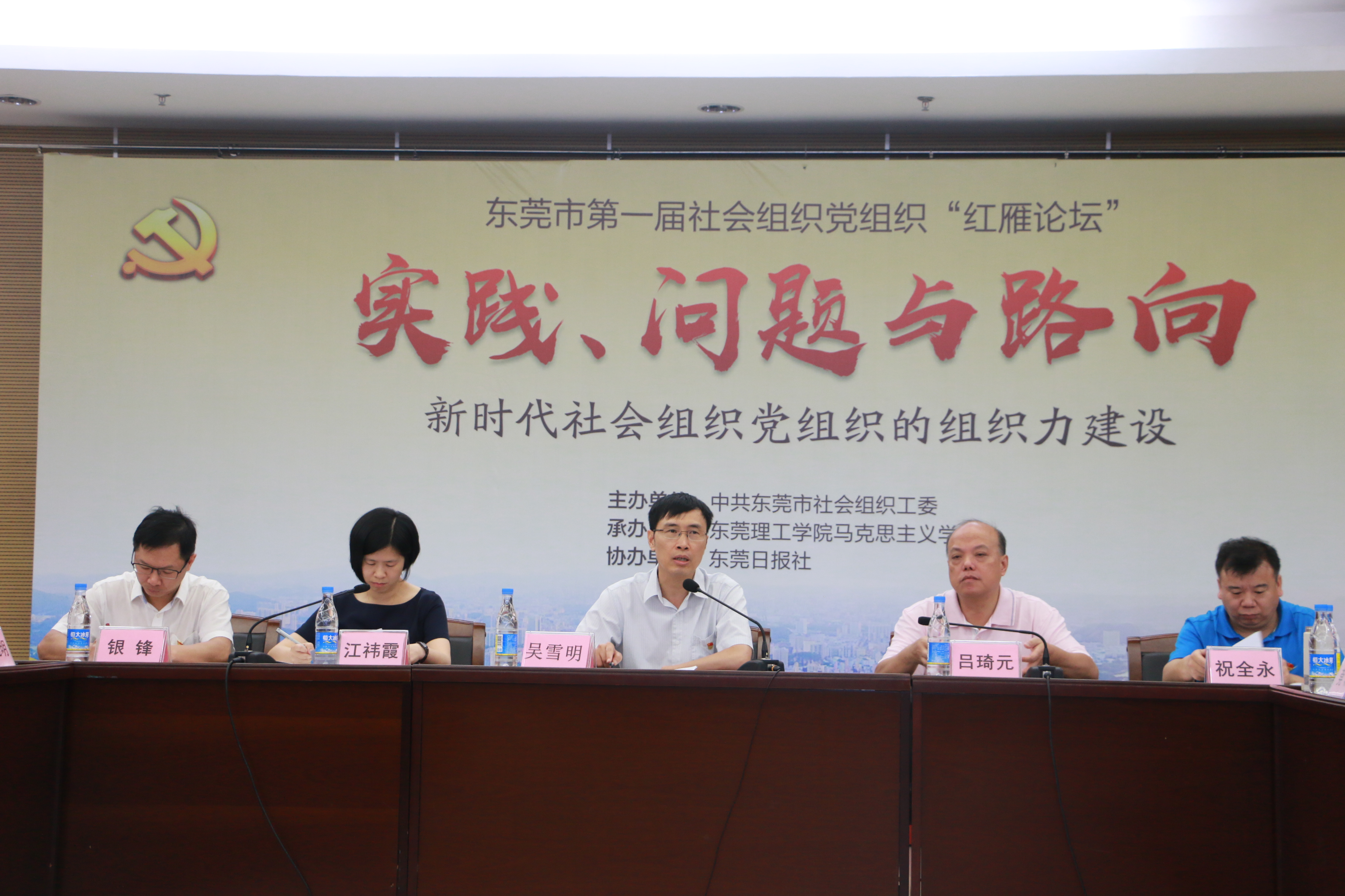 “七一”到来之际,6月30日上午,东莞市首届社会组织党组织“红雁论坛”在我校会议中心举办。东莞市委组织部副部长、市“两新”组织党工委书记吴雪明,我校党委副书记、马克思主义学院院长吕琦元,市社会组织工委书记江祎霞等出席论坛。来自华南理工大学马克思主义学院、我校马克思主义学院等单位专家学者,以及各镇街(园区)社会组织工委(党委)专职副书记和各行业党组织书记代表齐聚一堂,围绕“实践、问题与路向——新时代社会组织党组织的组织力建设”主题,交流经验,碰撞思想,为促进我市社会组织党的建设工作贡献智慧和力量。