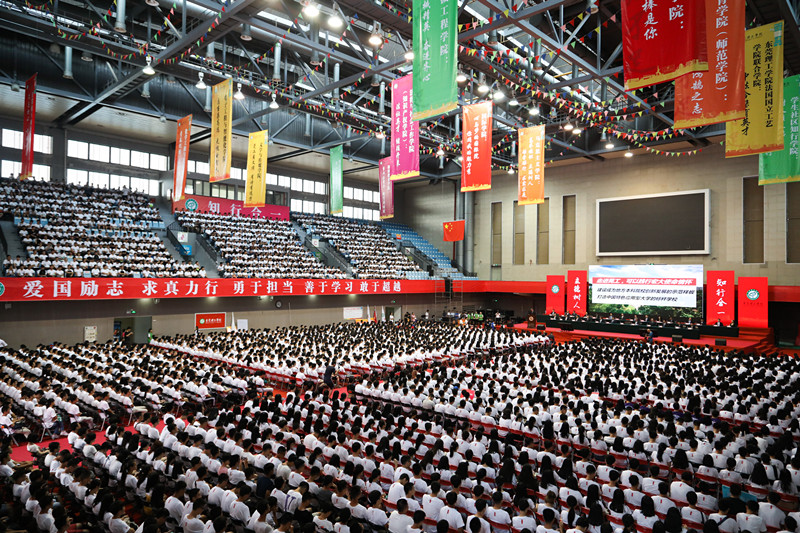中国科学院院士、我校双聘院士王立军教授,法国国立工艺学院校长法鸿教授,校领导成洪波、李琳、李忠红、杨敏林、马宏伟、李文芳,各二级组织机构负责人、教师代表,在校学生代表,家长代表以及4614名新生等出席典礼。党委副书记吕琦元主持开学典礼。