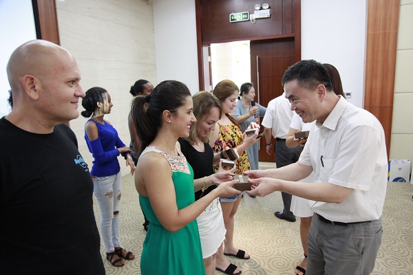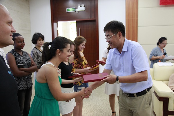 结业典礼向为同学们颁发了校友证书、国际学院的徽章以及纪念品印章。捧着学院精心准备的礼物,同学们笑逐颜开。