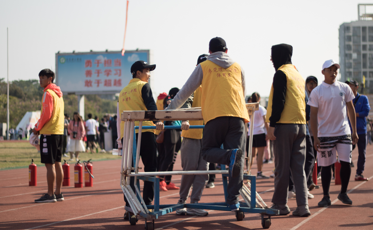 在精彩与丰富的校运会背后,是教育学院(师范学院)体育系老师与学生们精心的准备与落实。大到开幕式前的扯铃,飞盘表演,小到比赛现场的秩序维持,都能看到黄色工作服的学生们奔来跑去的身影。