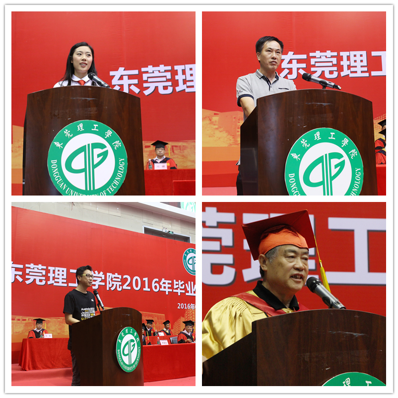 校友代表吴悦宁则以过来人的身份为毕业生献上“年轻没有失败”“吃亏是福”等六条建议。他认为,要清楚选择比努力更重要,3年后大家的个人价值才会真正爆发。不要轻言放弃,只有通过各种渠道解决问题才可以让自己成为一个不可或缺的人物。他告诫毕业生,作为莞工学子,学校的荣誉人人有责。