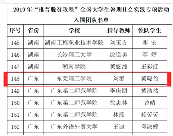 近日,从教育部网站获悉,由我校刘蕾老师和诸小妮老师共同申报的“暖风暑期社会实践服务队”,在经过层层推荐、资料审核、专家评审等程序后成功从上千支高校实践团队中脱颖而出,入围2019年“推普脱贫攻坚”全国大学生暑期社会实践专项活动。该计划广东省仅有10支队伍入选。