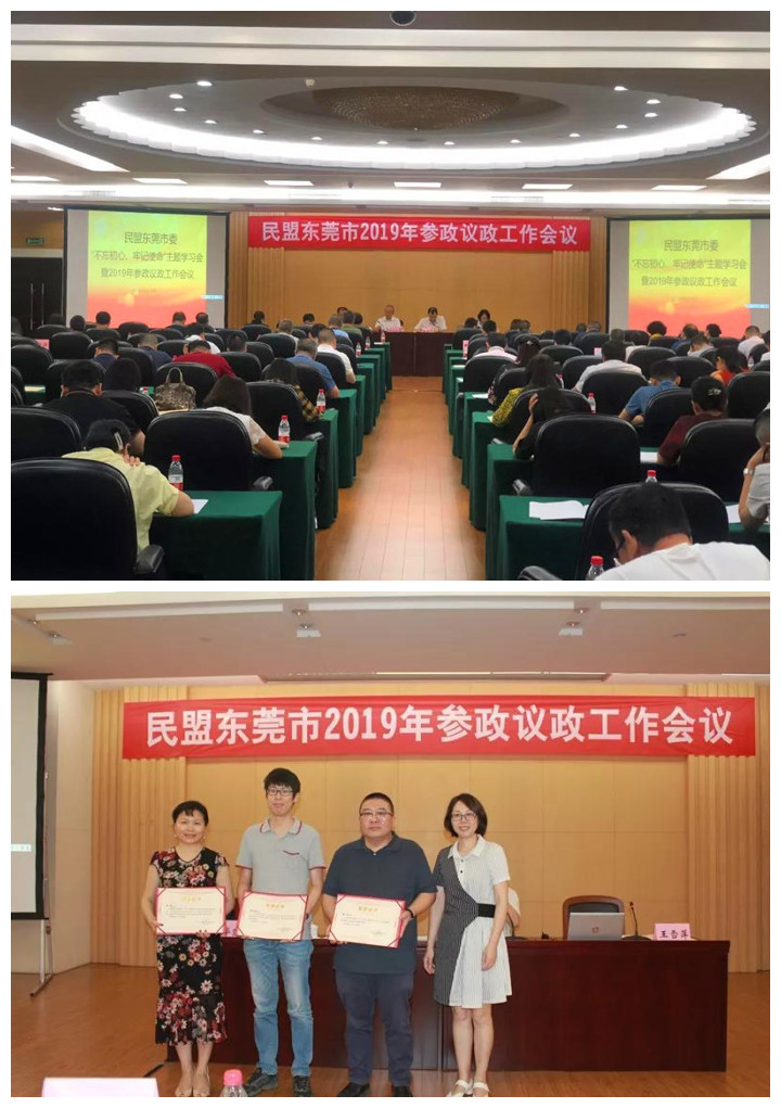 6月29日,民盟东莞市委在市行政办事中心召开“不忘初心、牢记使命”主题学习会暨2019年参政议政工作会议。会议对民盟东莞市委2018-2019年度获奖及获采用提案(建议、信息、材料)的撰稿者进行了表彰。