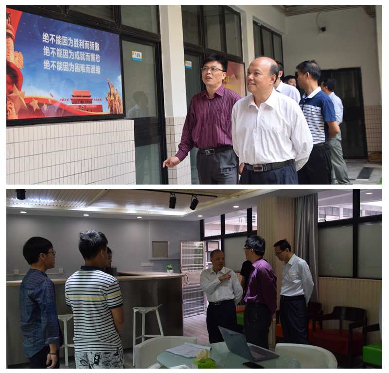 会前,与会人员参观了粤台学院团学办公室、学工服务办公室、创新创业实训室及研修实习室。各办公室向同学们垂直开放,设计注重细节和实用效果,以达到共建共治共享的学生工作局面,为参观人员留下深刻印象。