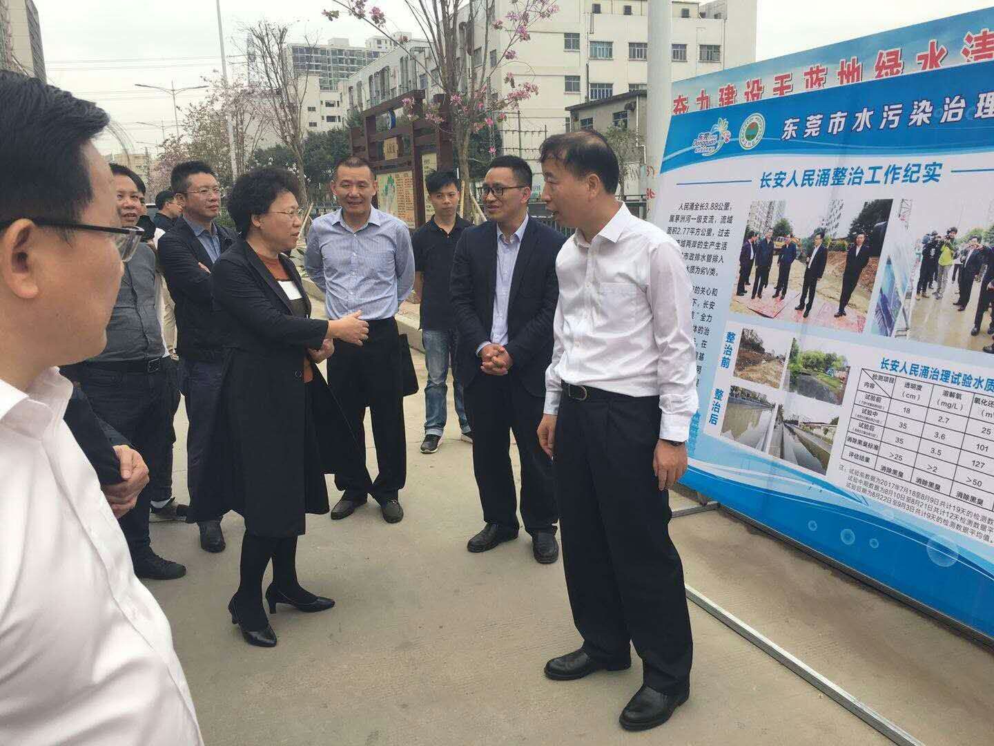 杨志峰院士团队负责的老围河、人民涌黑臭水体治理试验自2017年年中取得成功以来,作为东莞市黑臭水体治理的示范工程,得到了各级政府、社会各界的广泛关注。今年3月上旬至今,东莞市委副书记、代市长肖亚非,广东省环保厅长鲁修禄等先后到现场考察。