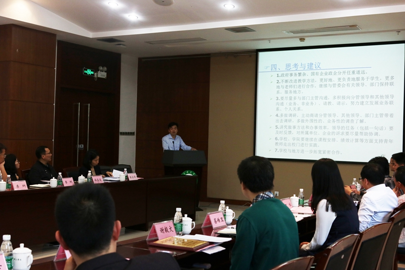 校党委书记成洪波表示,我校青年教师挂职锻炼工作已进入第6个年头,青年教师们不负市委市政府和学校的期望,闯出了一定品牌,赢得了良好声誉和影响。成洪波希望青年教师挂职队伍能深化思考,以习近平总书记在全国高校思想政治工作会议上提出的“四个服务”精神为指导,首先要把握好方向,明确高校的历史使命和职责,从时代要求和区域经济发展需要出发,精准对接挂职单位需求,主动探索,协助地方实实在在解决问题。成洪波要求挂职教师要努力提高自身能力,特别是提升政治能力和综合素质;要注意抓好工作重点,着重在人才吸聚问题,产业发展问题,社会建设等问题上进行深入思考,努力建立起学校与地方的紧密联系,设计出可持续的工作计划,做到“人走茶不凉”;要建立科学合理的工作预期,在工作过程中形成明确的工作思路与工作清单。成洪波要求挂职工作要注意扩大实效,做好回顾与交流,形成材料。成洪波还强调挂职教师要注意遵守各项纪律,清清爽爽干好工作。