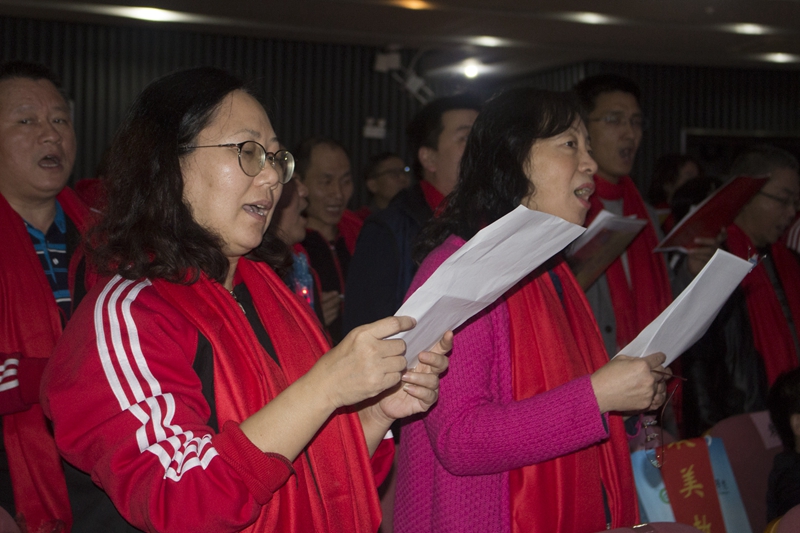 演出前,我校党委书记成洪波通过视频向全校师生致以新年的祝福,我校各分工会组成的合唱队进行了热烈的拉歌活动,《祝福祖国》《团结就是力量》《我们走在大路上》等歌曲响彻礼堂,老师们热情的演唱感染了在场的每个人。