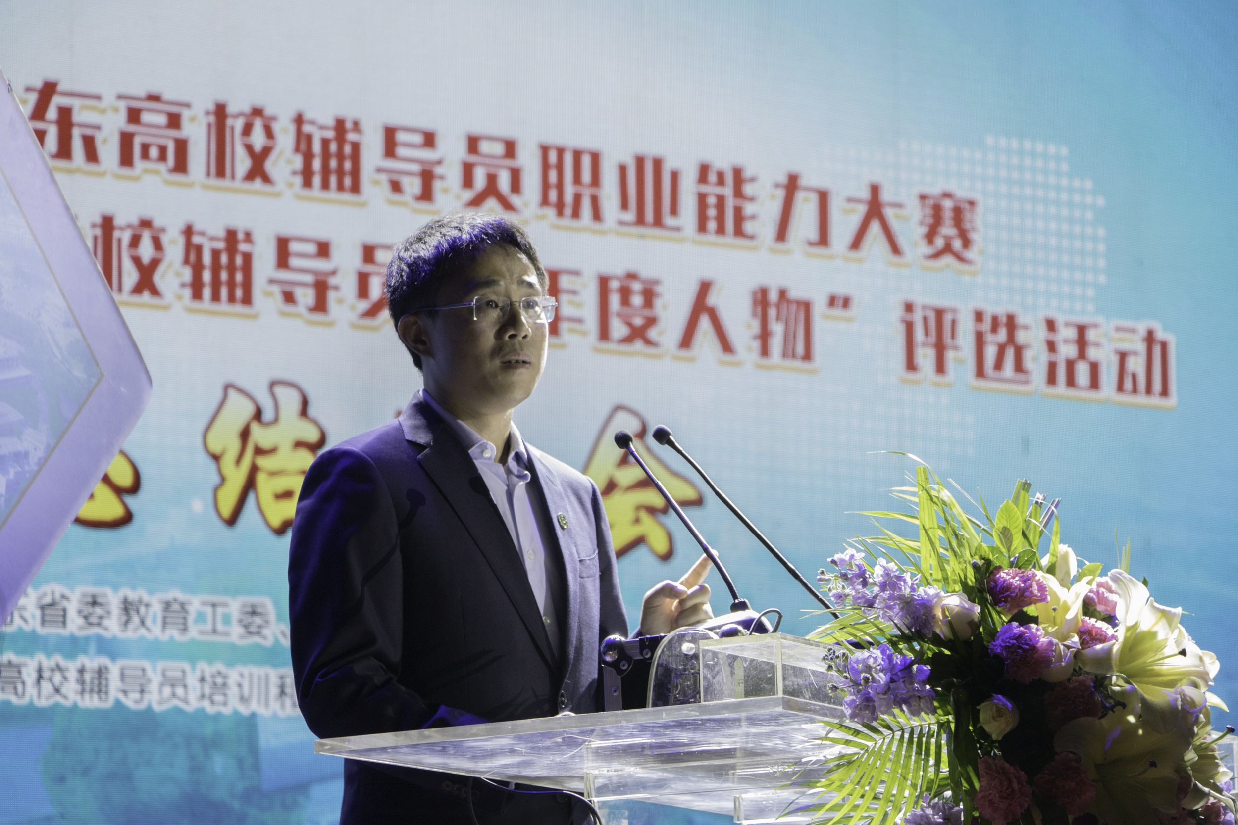 袁本新处长对我校党委行政高度重视本届赛事,协调各部门紧密配合,精心筹备的各项赛务工作,对参加本次赛事的评委所表现出的高度责任感和不辞辛劳,对来自全省129所高校的254名专职辅导员选手们表示衷心感谢。袁处长指出,新时代对高校辅导员提出了新的要求,习近平总书记提出了“谁出卷”、“谁答卷”、“谁阅卷”的时代之问。针对高校,我们的答案是时代出卷,辅导员答卷,而最终,是由我们青年一代的大学生来阅卷。如何交出满意的答卷,袁处长希望全省辅导员以全省高校辅导员“年度人物”,获奖辅导员为榜样,进一步认清形势,提高政治站位,增强意识,强化能力,以专业的辅导员素养培养新时代的大学生,为培养新时代中国特色社会主义建设者鼓与呼,为人民、为国家交出一份满意的答卷。