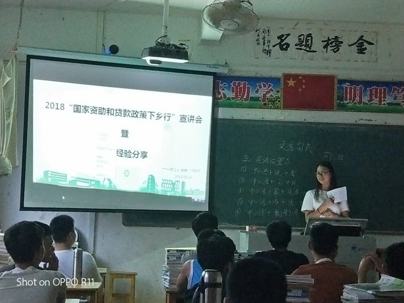 大雨磅礴,依然阻挡不了莞工心源夏乡实践队走进湛江市徐闻县第二中学。队员们无法压抑内心那股热情与期待,他们迫不及待地想与高三学子分享一切自己所熟知的莞工大学生活,他们不顾风雨兼程,拎着鞋子,光着脚,朝着目的地大步向前。在徐闻县第二中学高三(五)班,实践队员开展了以“放飞希望,点燃梦想,助力学子求学之路”为主题的班会和学习经验分享活动。实践队员轮流对国家资助,助学贷款及学校资助政策进行了详细解读,并对学弟学妹们关注的生源地贷款、勤工助学、奖助学金申请等方面的问题进行了答疑解惑。同时,队员们详细地解说并提醒大家要提防校园贷事件,遇到经济困难等问题要向长辈、老师和同学求助,千万不要触碰校园贷。