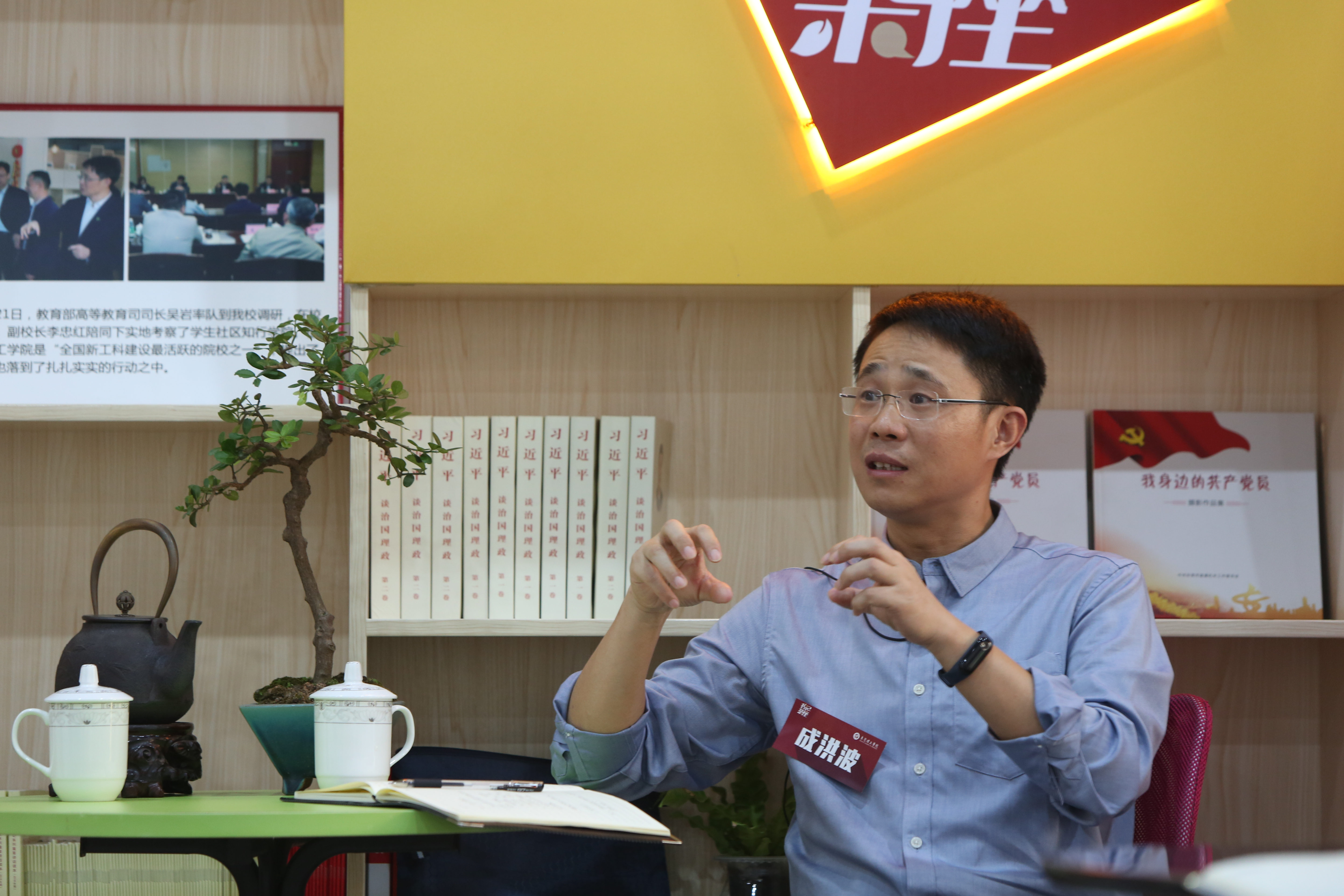 在茶座上,成洪波首先分享了自己学习习近平总书记视察广东重要讲话精神的体会和感受。他表示,要掌握习近平视察广东重要讲话的精神要义,重点在于三句话:要坚定改革开放的决心,加大改革开放的力度;要坚定迎接一切挑战的信心,世界形势错综复杂,我们要增强面对困难的勇气和信心,抓住“一带一路”以及粤港澳大湾区的建设的机遇;同时要具有办好事情的鲜明态度,知行合一,立德树人,以天下为己任,忧国忧民,要有为党为社会奉献担当的精神。