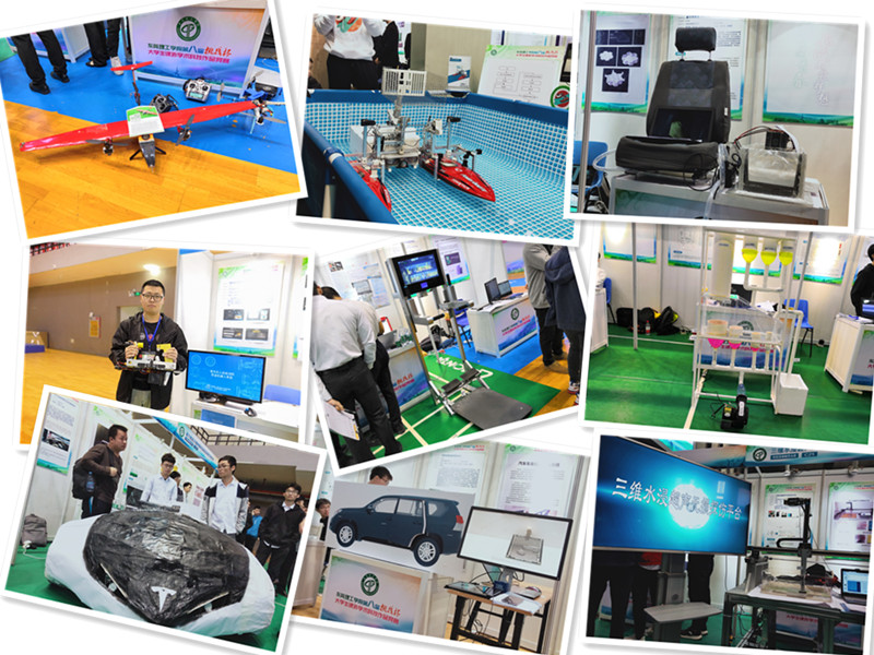 学生是“挑战杯”竞赛的主角。为了尽可能地展示自己的项目,小小的摊位被布置地五花八门:灵巧的小机器人在地上游走,无人机晃悠悠地往空中飞去,更有人当中布置了小型水池,用于演示水面垃圾回收机器如何运转……哲学社会科学类的摊位则贴满了同学四处调查研究的照片,电脑上的PPT制作精美,随时准备展示调研成果。来自机械工程学院大三的邬仕伟和同学们带来了名为“基于模块化设计的人工智能服务机器人”的项目,他向记者展示了自己的作品——一个水滴状的绿色机器人。据他介绍,这个服务机器人主要功能包括行走系统,手臂摆动和视觉与语音系统以及表情功能,可应用于很多地方,如学校,旅游景点等。机器人采用了百度云语音识别科技,可以实时识别语音上传到后台数据,然后通过后台数据发送到前台,实现人机交互。视觉识别功能则可对现场的图片进行处理,实现跟随、引路等功能。