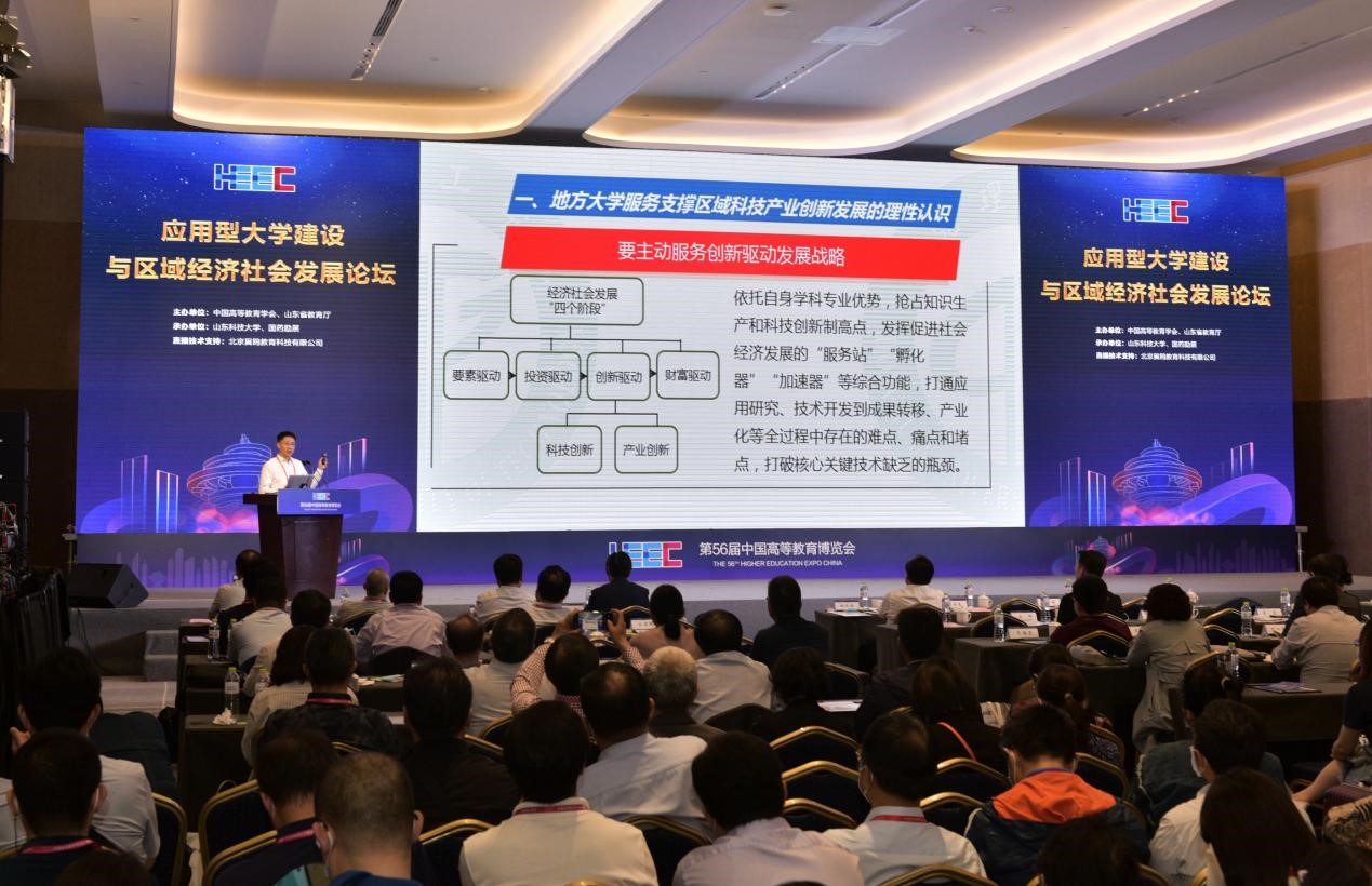5月21日至22日,第56届中国高等教育博览会在山东青岛举行。应中国高等教育学会邀请,校党委书记成洪波出席博览会开幕式并在应用型大学建设与区域经济社会发展论坛作了《加快建设新型高水平理工科大学 服务支撑区域科技产业创新发展》的主题交流报告。中国高等教育学会副会长、教育部高等教育司原司长张大良,教育部高等教育司二级巡视员、综合处处长武世兴,山东省教育厅副厅长白皓、山东科技大学党委书记罗公利、山东科技大学校长姚庆国等出席论坛。