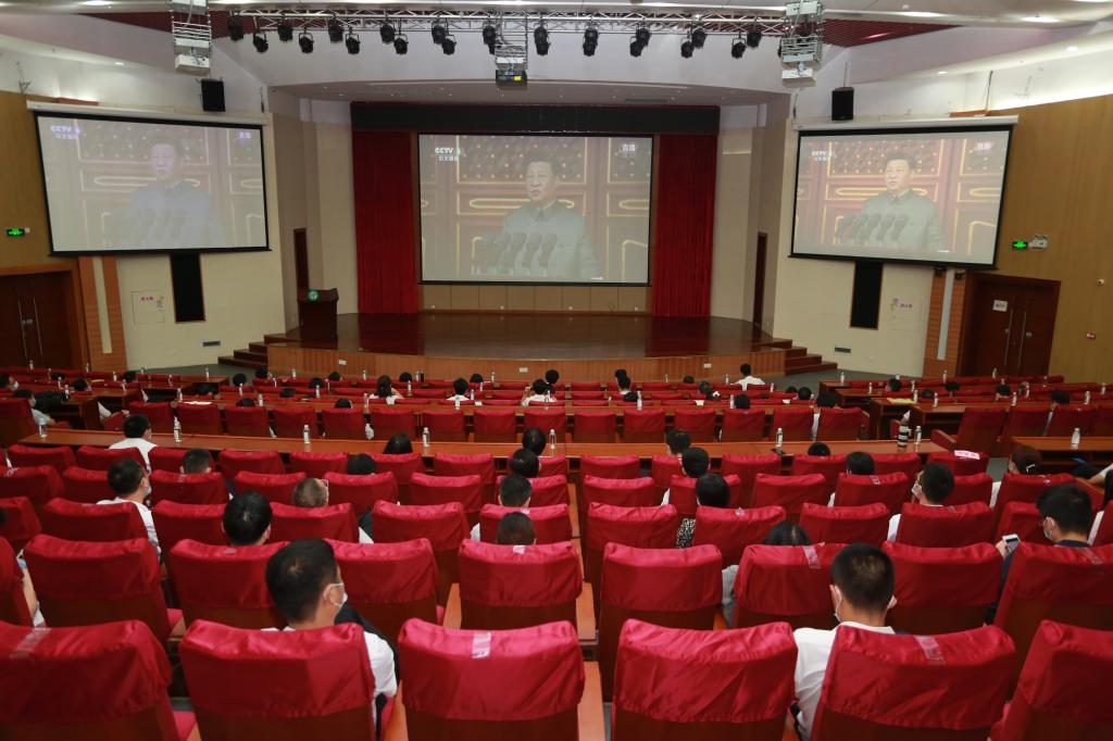 学校组织全校党员干部和师生员工采取线上线下相结合的方式,通过各类新闻网站、新媒体平台实时收看直播,认真聆听习近平总书记重要讲话精神,共同见证这充满庄严感和自豪感的伟大历史时刻。大会结束后,大家通过微信群和朋友圈等途径分享学习感悟,为党的百年华诞献上祝福。