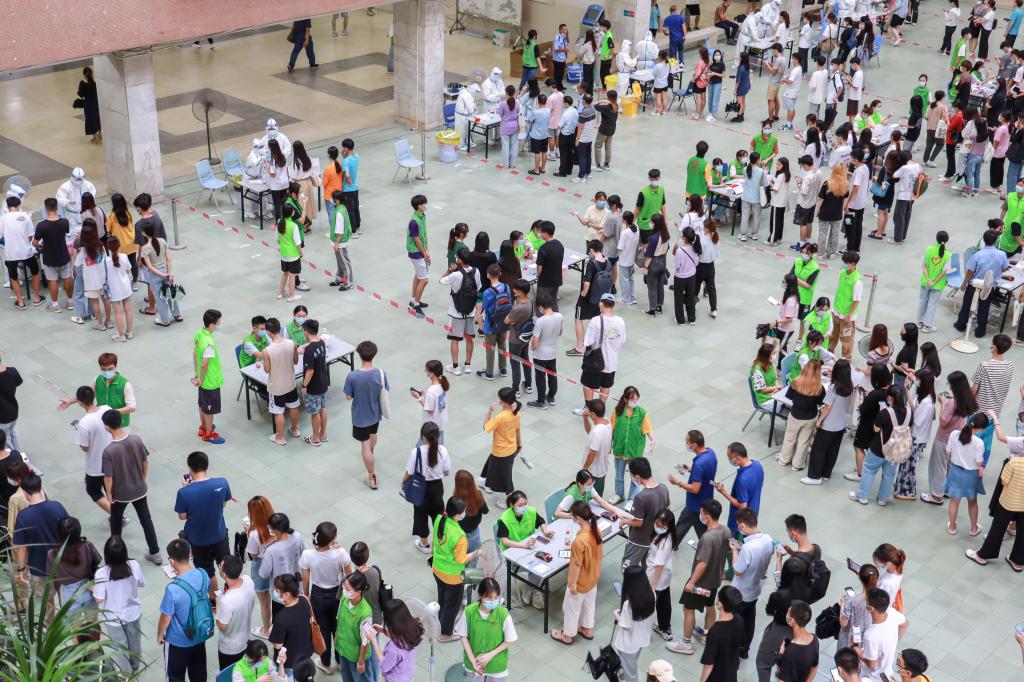 两校区共设置了22个核酸检测采样点,师生员工在各二级单位组织下,提前备好“葵花码”,佩戴好口罩,按照要求依序排队等候。